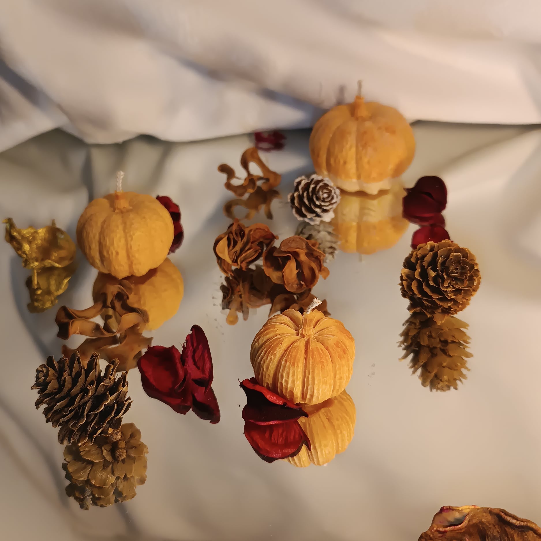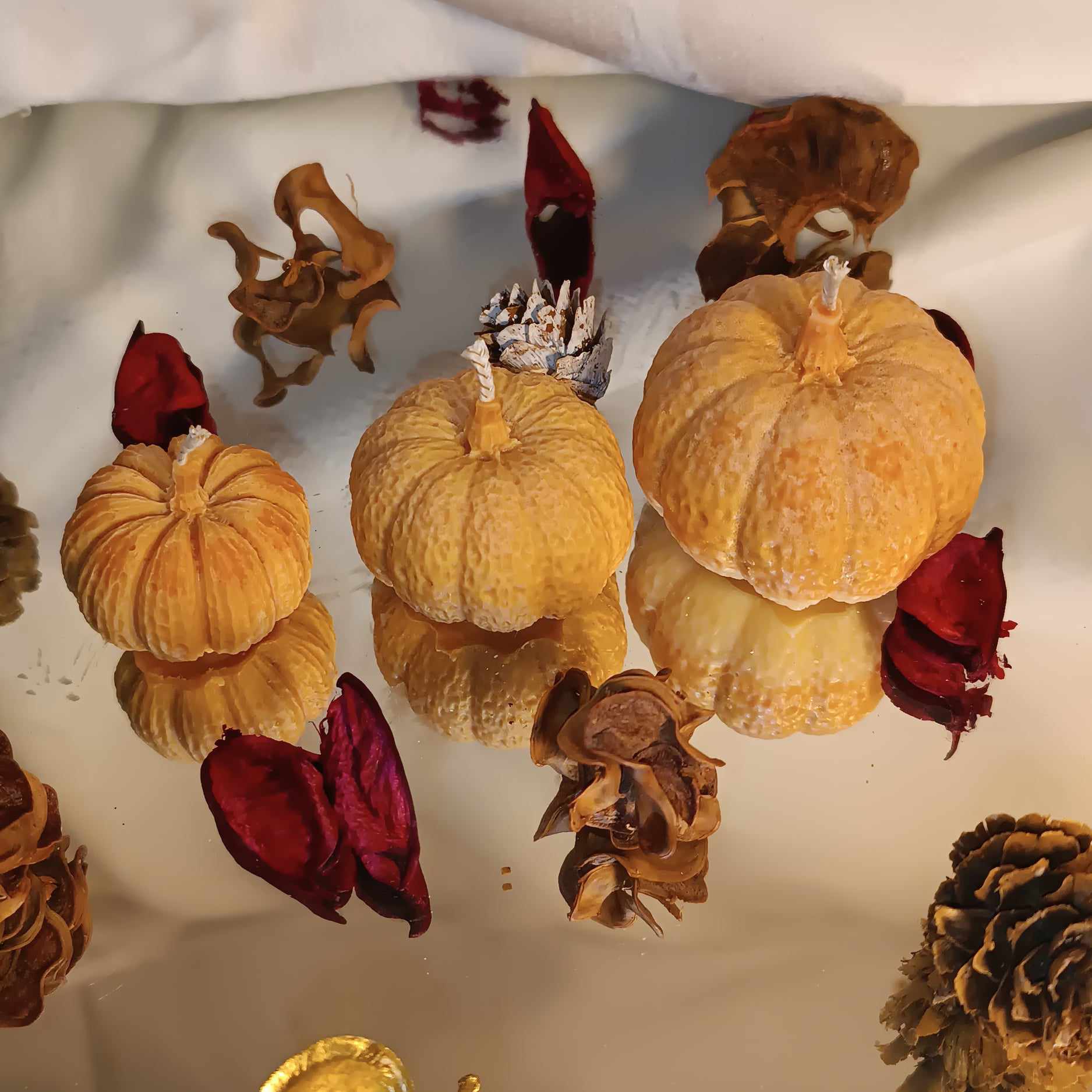 Φέρτε ζεστασιά και φθινοπωρινή θαλπωρή στον χώρο σας με αυτό το υπέροχο σετ τριών χειροποίητων κεριών από 100% φυσικό κερί σόγιας, σε σχήμα κολοκύθας.